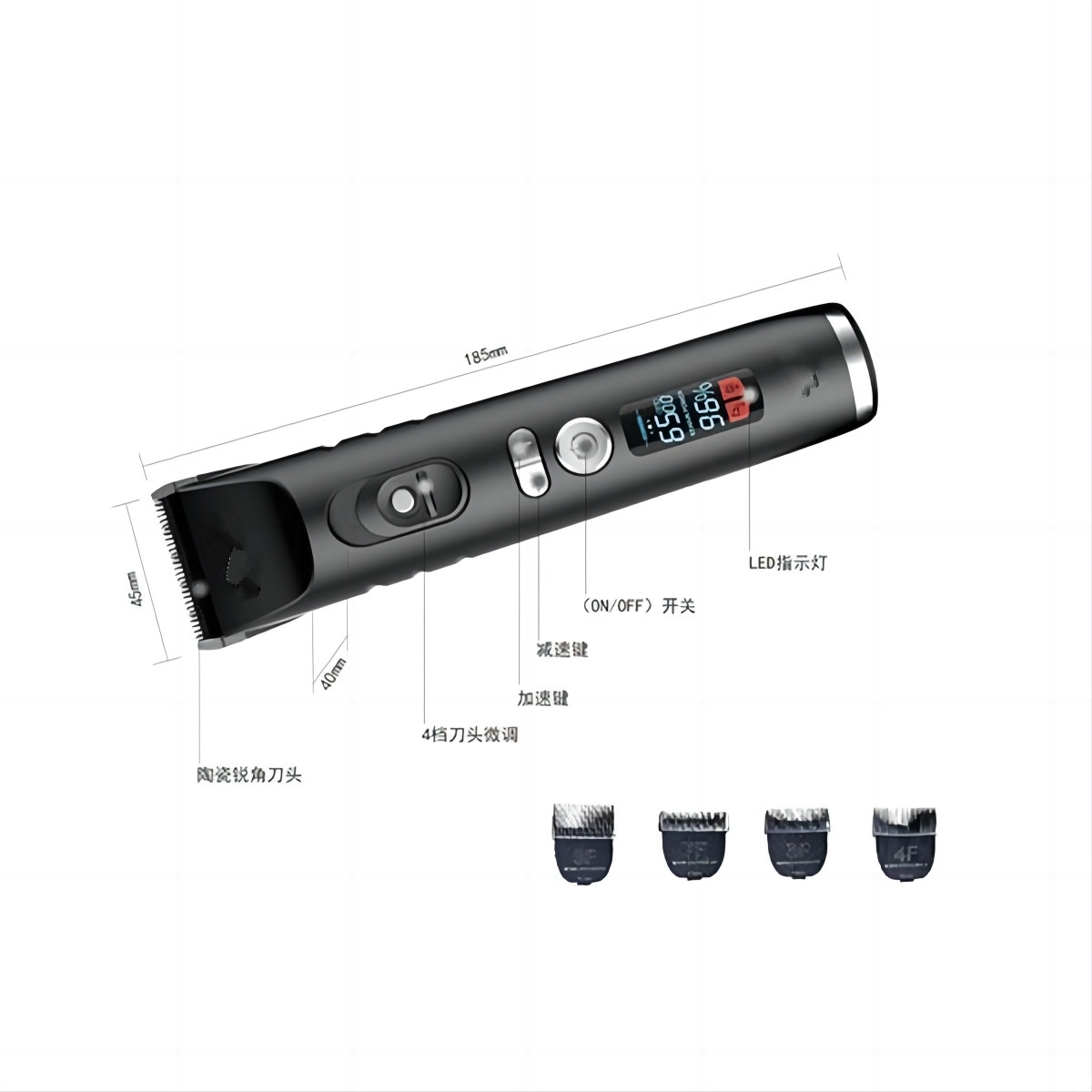 • Ecranul LED de înaltă definiție afișează nivelul bateriei în timp real, prevenind întreruperile de alimentare în timpul îngrijirii și asigurând servicii mai fluide de îngrijire acasă sau de salon.